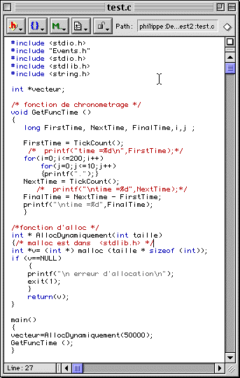 Avec Metrowerks, on ne peut habituellement pas avoir des données locales plus grande que 32k ou 68k. Pour résoudre ce problème il faut modifier la mémoire allouée à votre application. Il y a plusieurs choix, l'un statique et l'autre dynamique.
